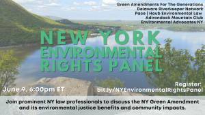This event is sponsored by Green Amendments For The Generations, the Delaware Riverkeeper Network, Pace | Haub Environmental Law, Environmental Advocates NY, and Adirondack Mountain Club.